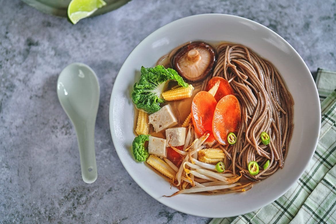 Home Vegetarian Vegan Soba Noodle with Carrots, Shitake Mushrooms